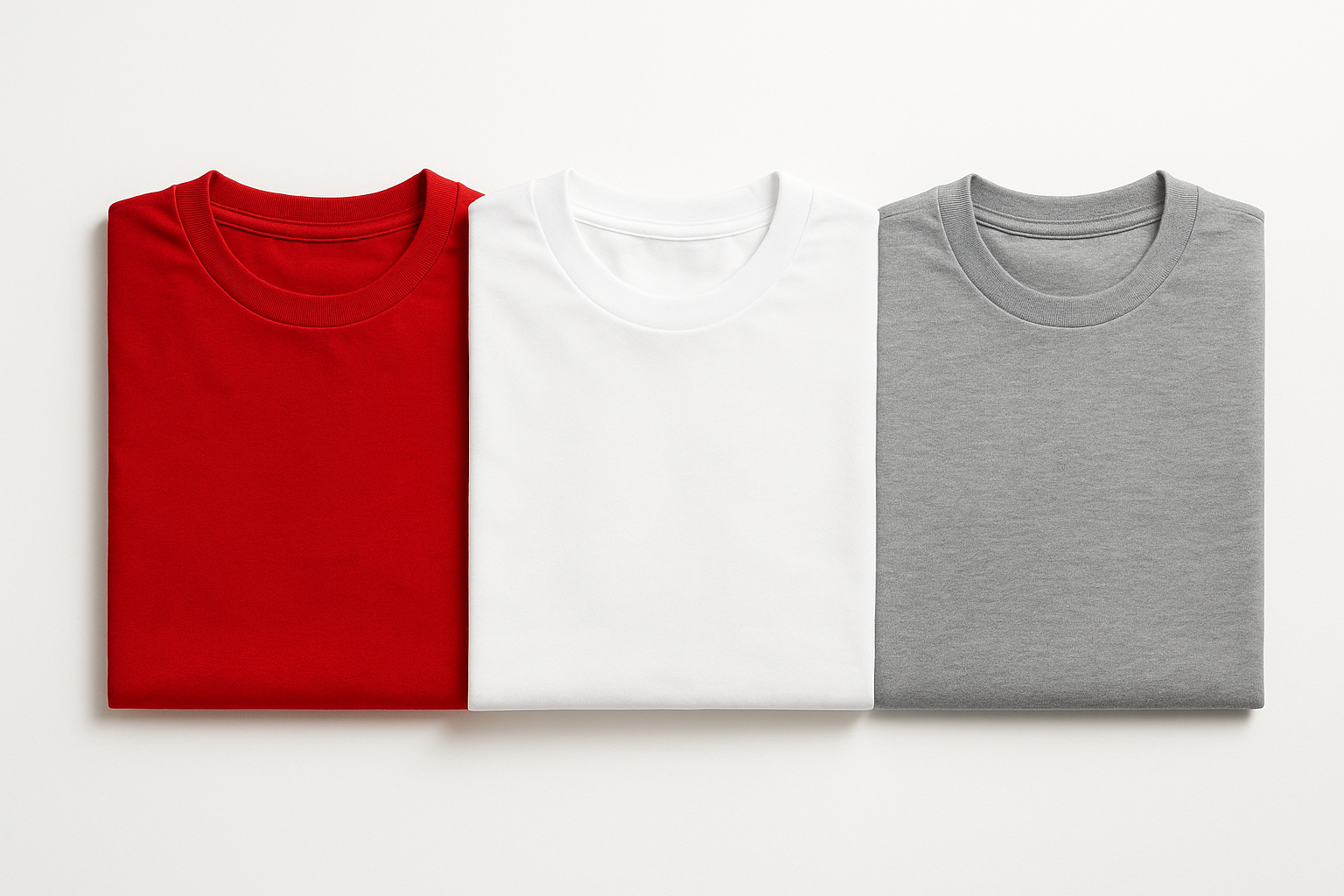 ¡Perfectas para personalización! Pack de 12 playeras básicas de alta calidad en colores variados (roja, blanca y gris). Ideales para: